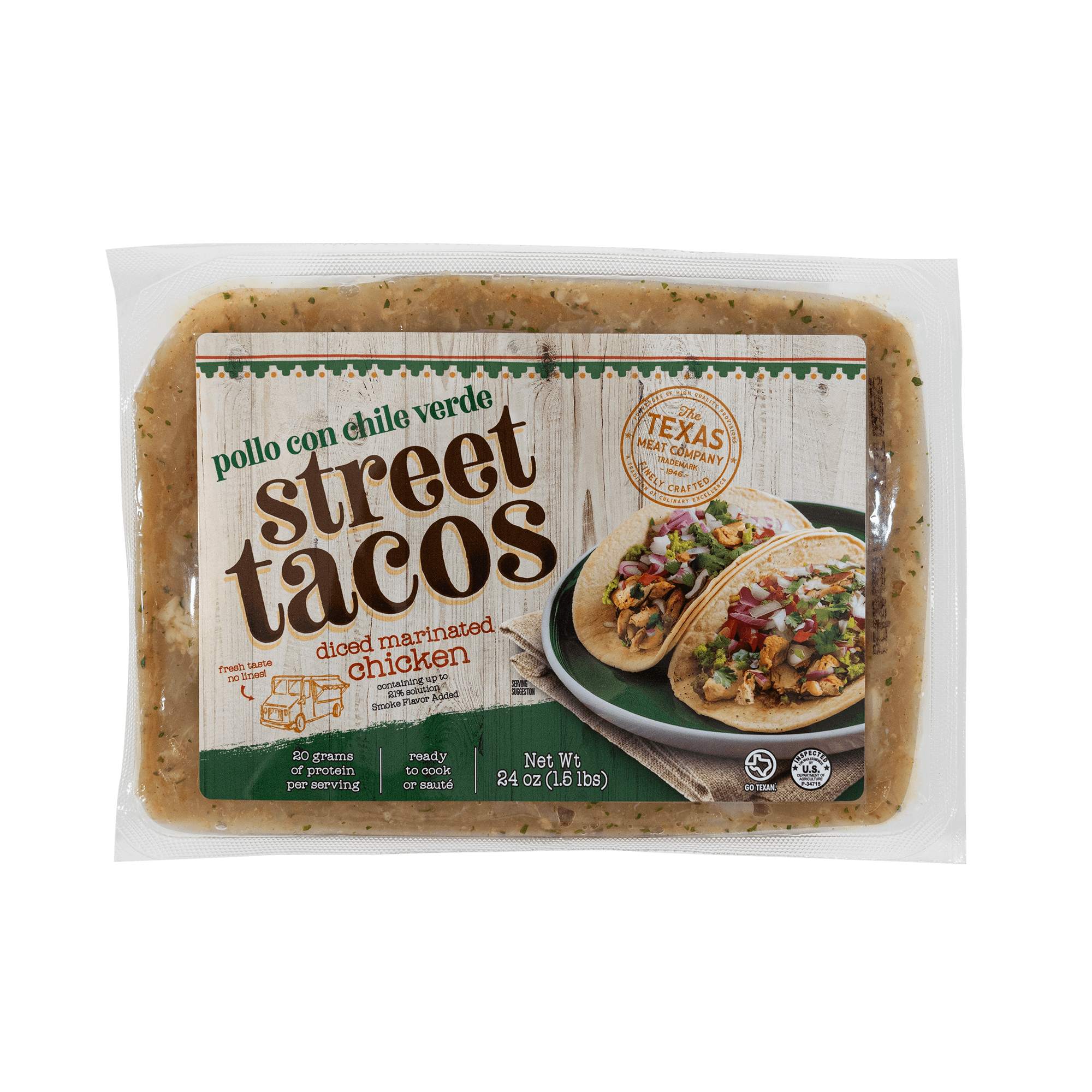 Sure to be a family favorite, these diced bites of tender chicken breast marinated with a perfect blend of hatch chiles will have your family asking for more. This makes a perfect meal for enchiladas, street tacos or as a topper on salads.